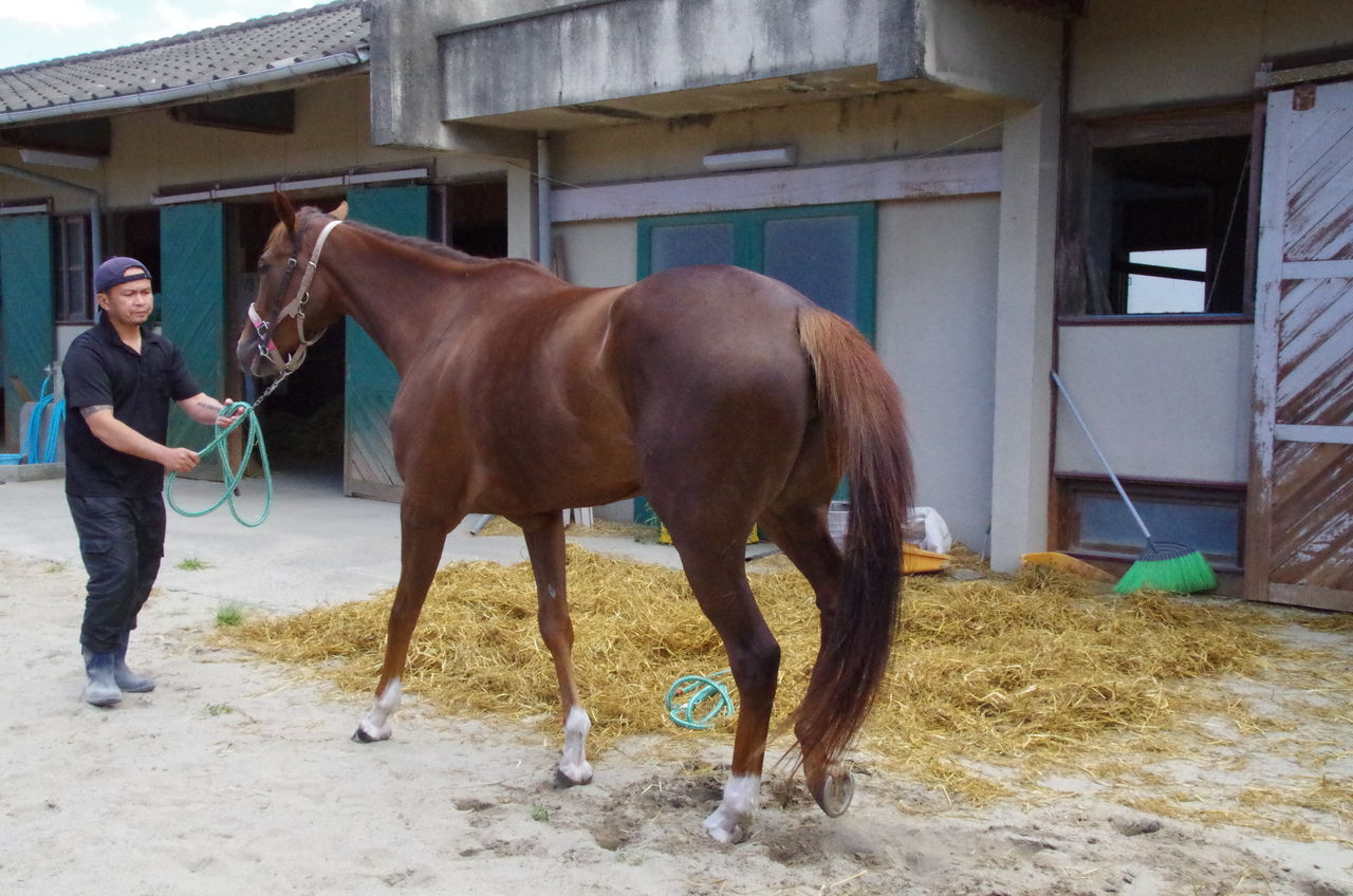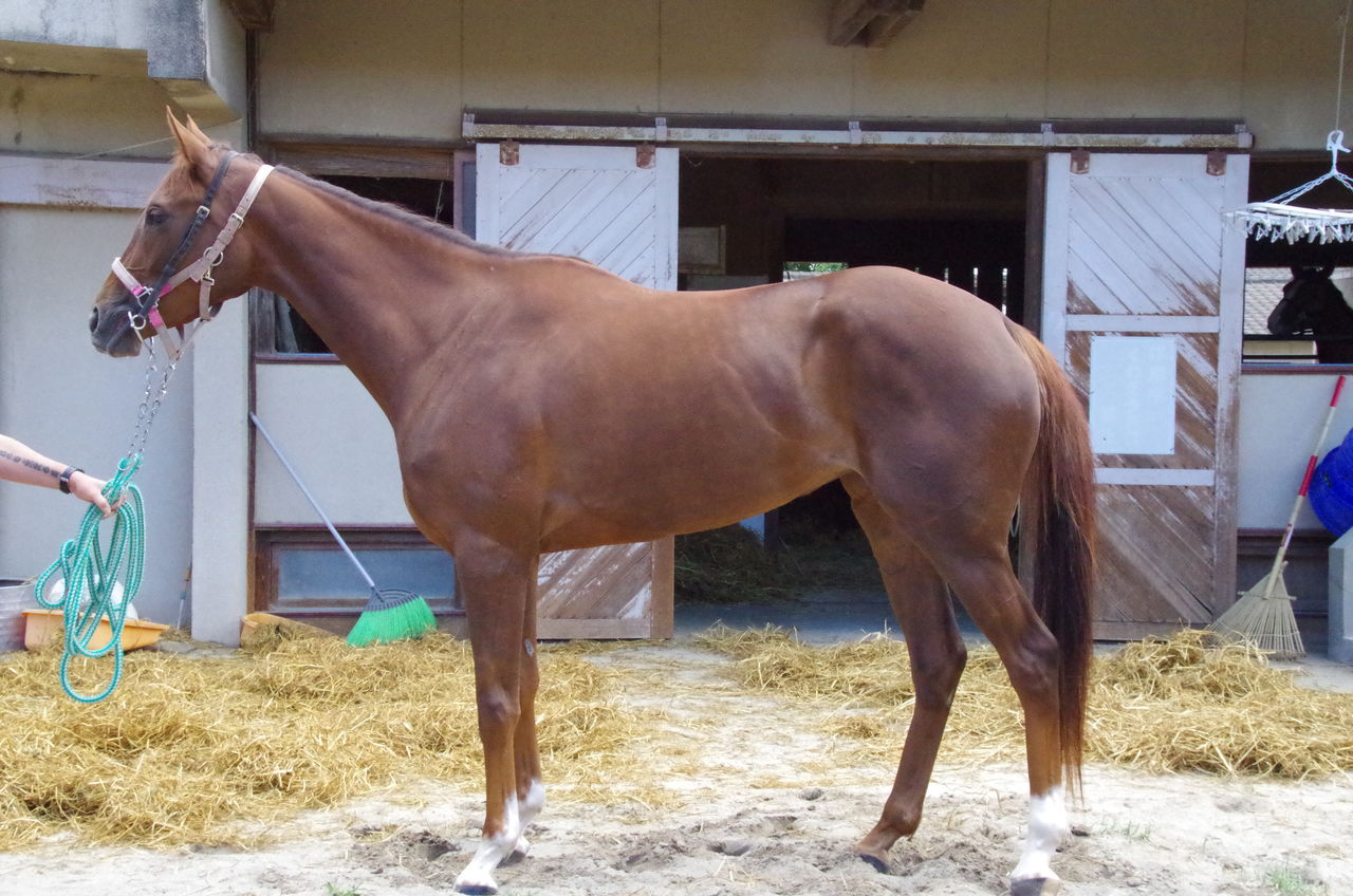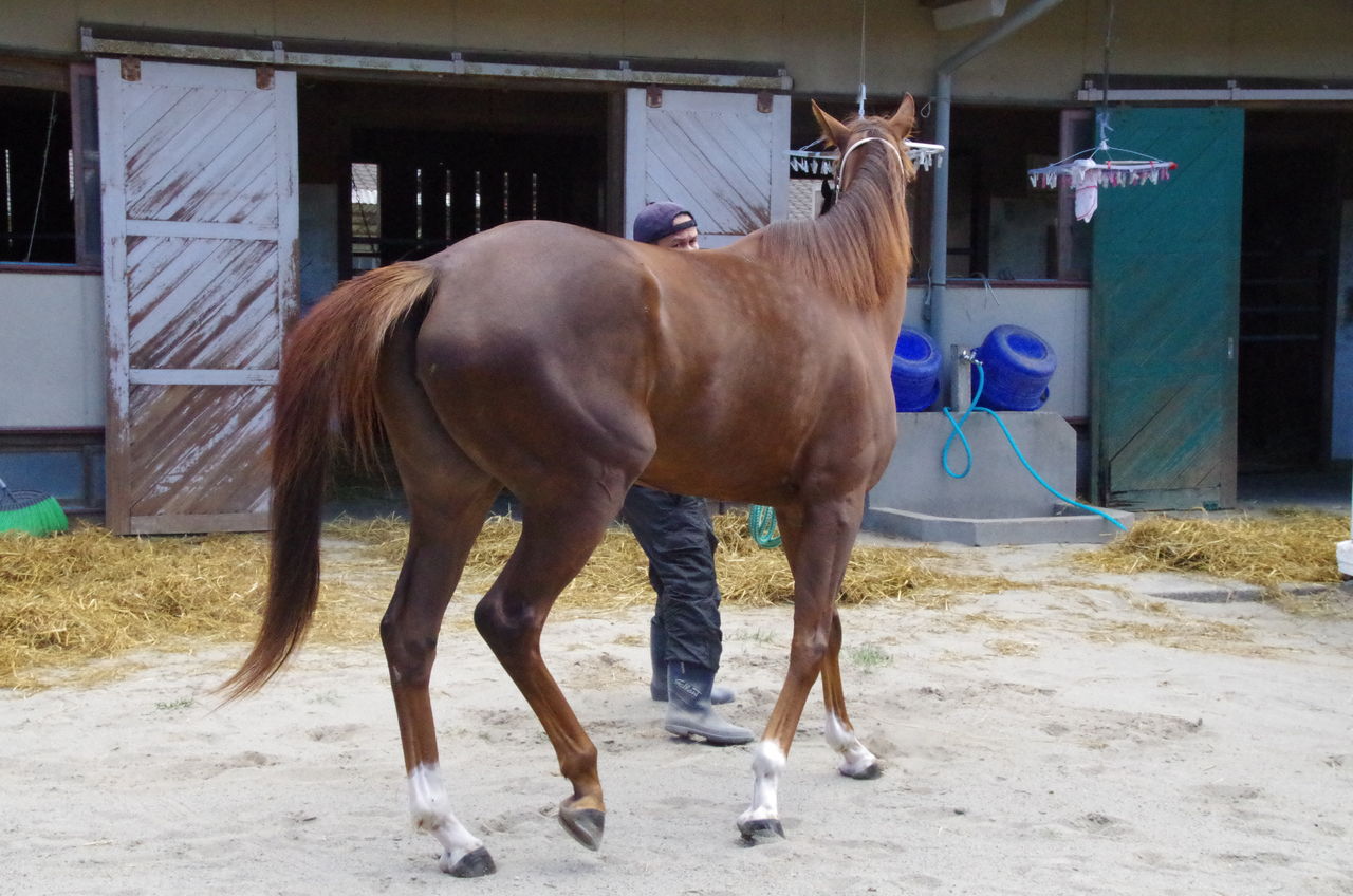 もうしばらくはゆっくりさせて、もっと馬体をふっくらとさせたいと考えております。