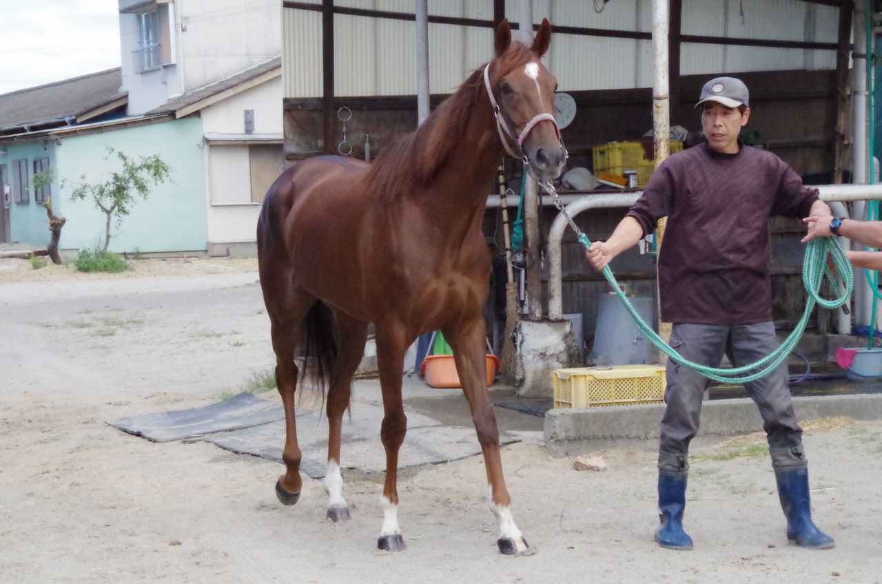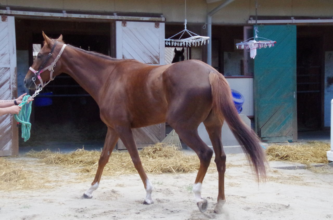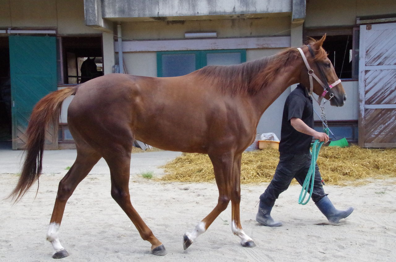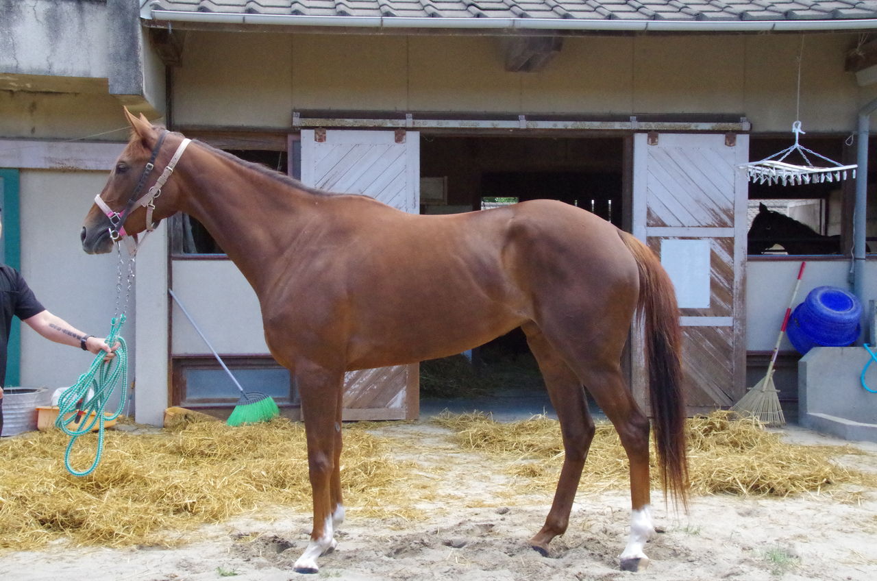 もうしばらくはゆっくりさせて、もっと馬体をふっくらとさせたいと考えております。