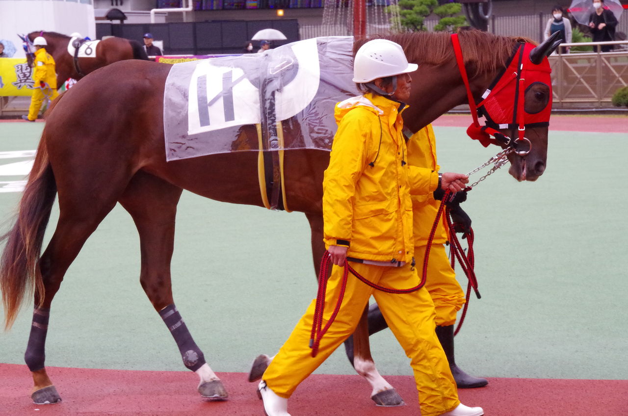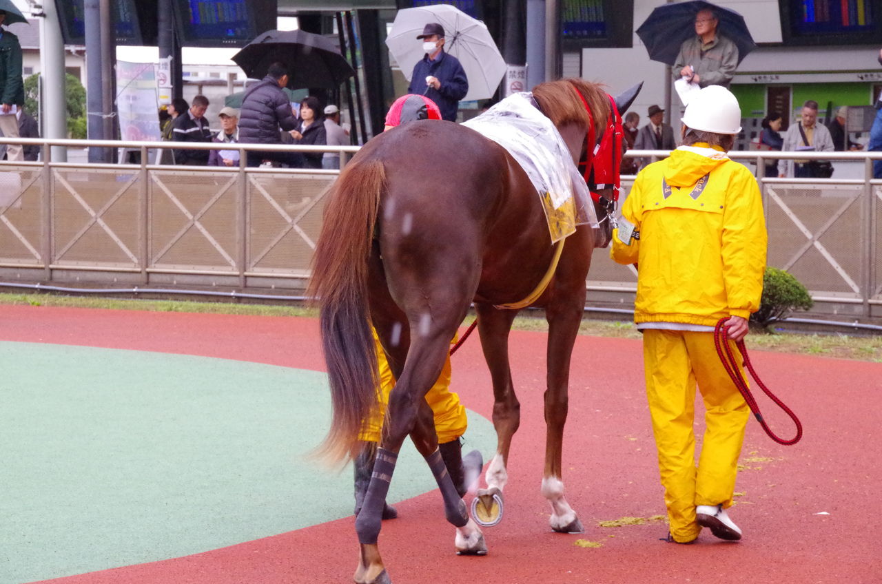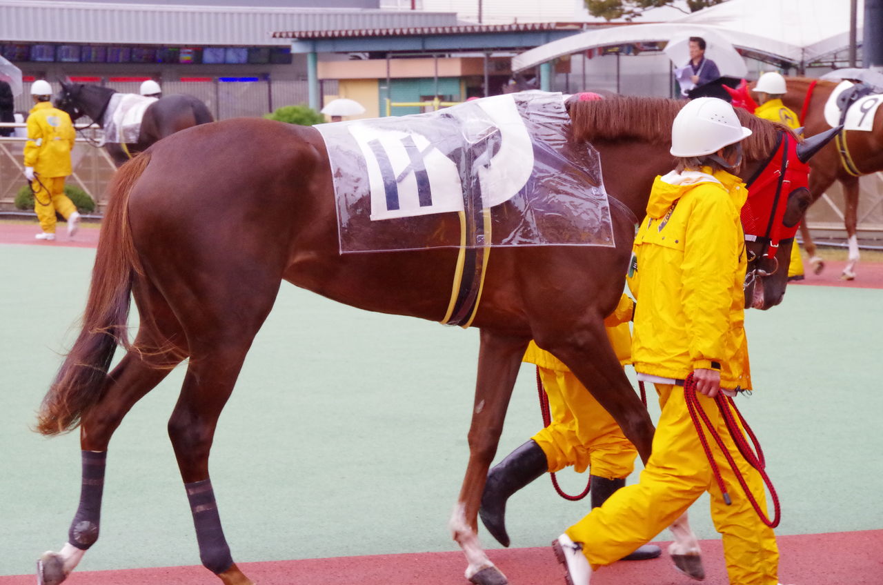 雨の続く天候から馬場はひどいことになっていて、時計のかかる馬場になっています。