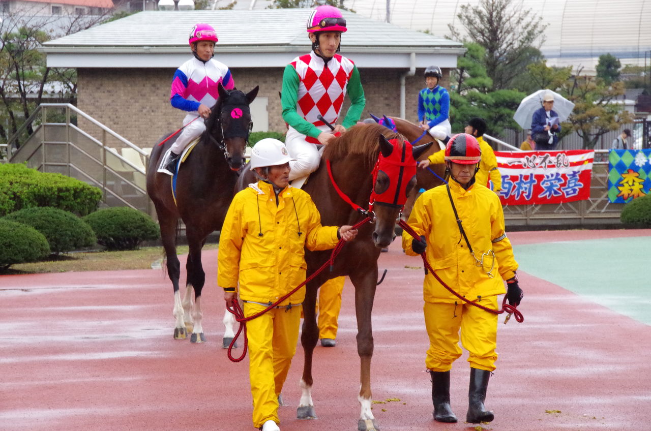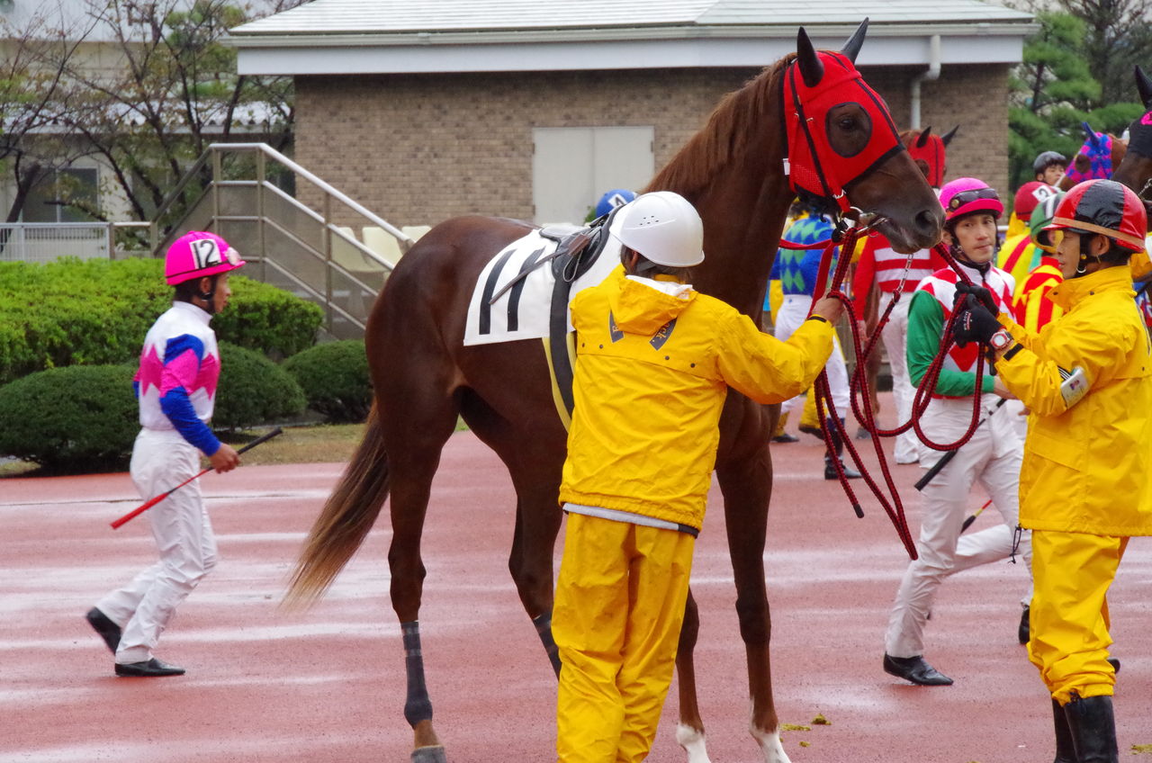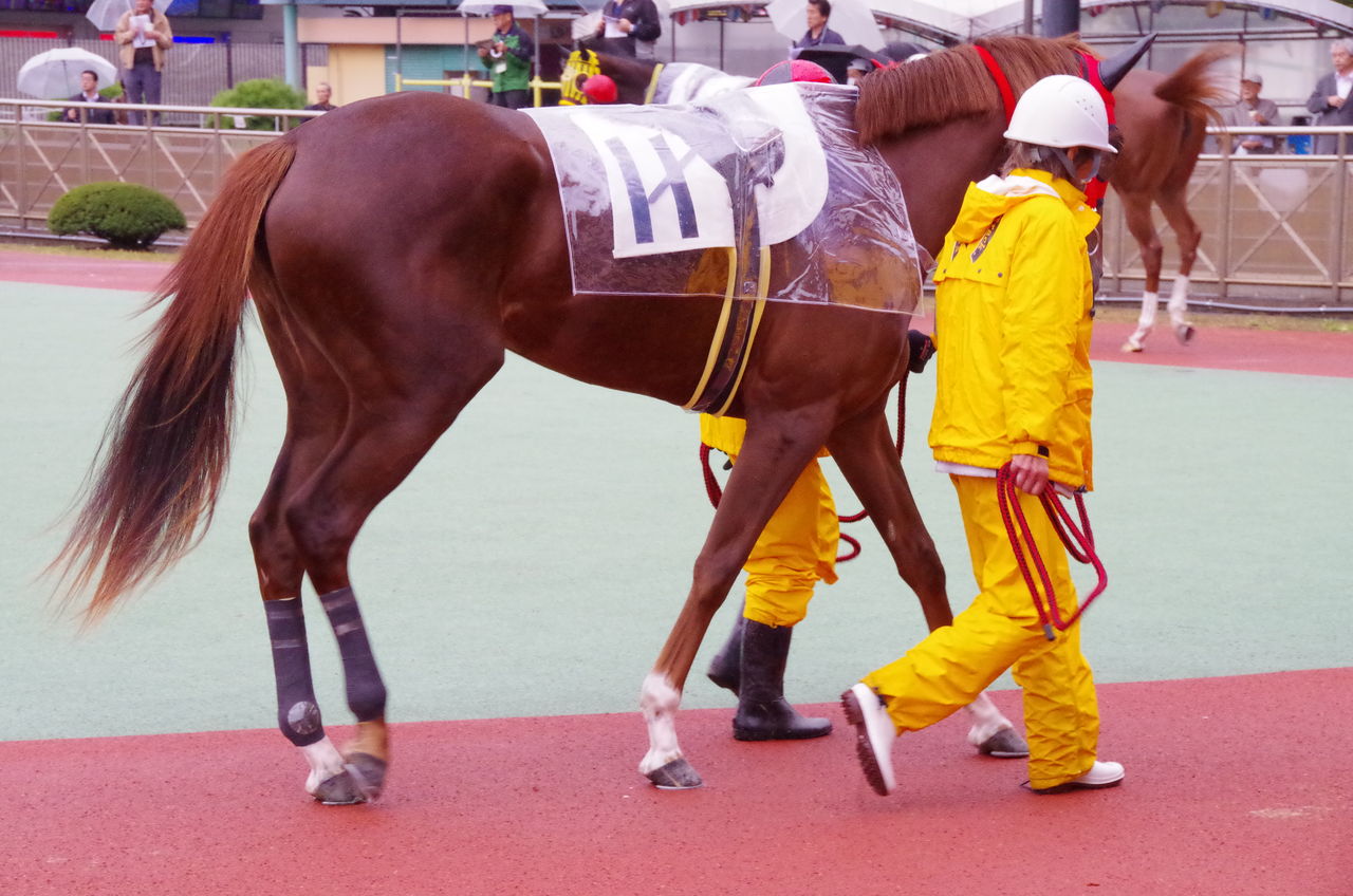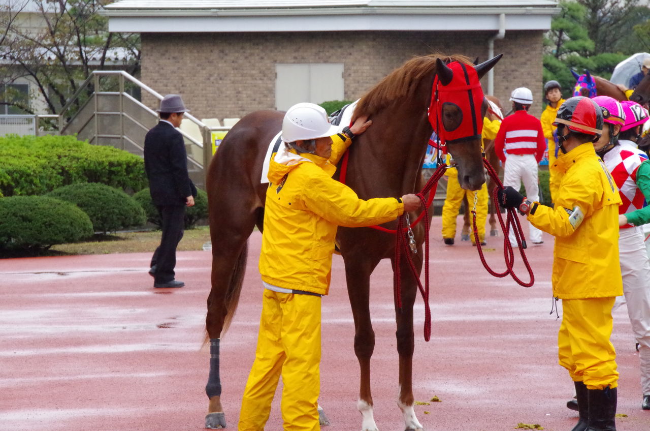 雨の続く天候から馬場はひどいことになっていて、時計のかかる馬場になっています。