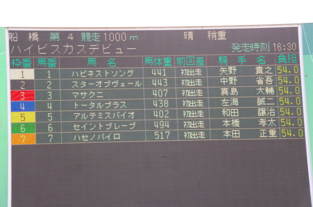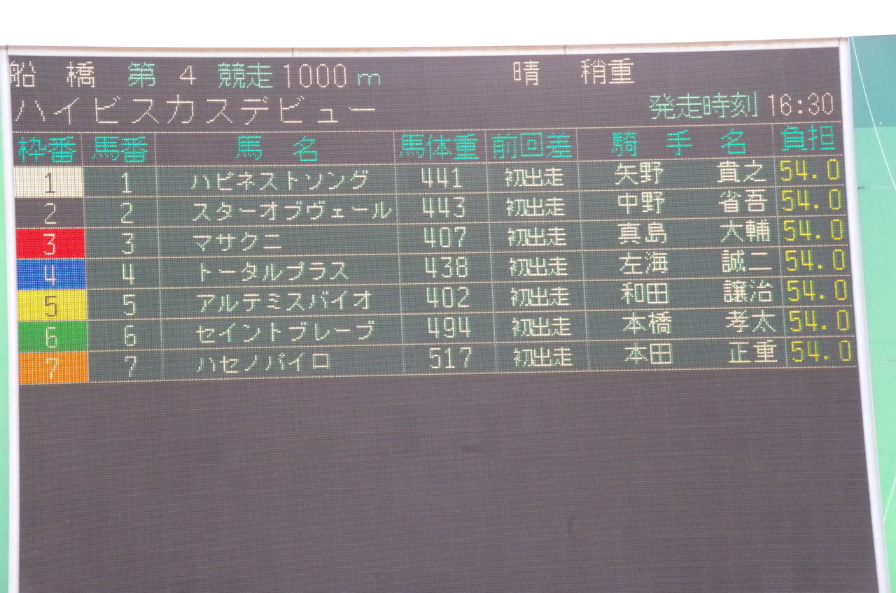 2017年8月8日(火) 船 橋 第4競走 ダート 1000m(左)16:30発走