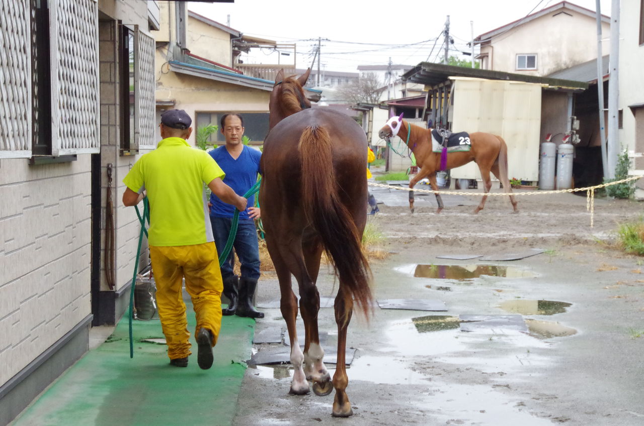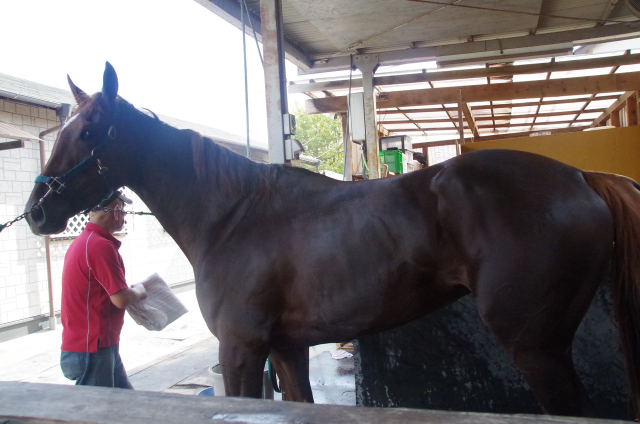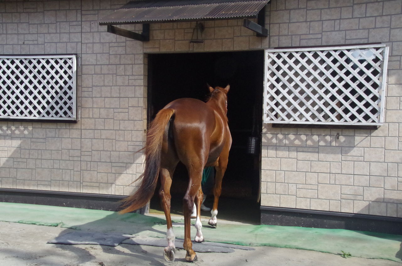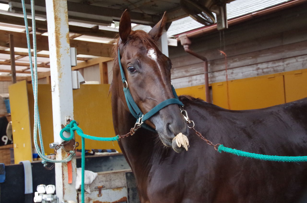 ハピネストソングはレース後、更にうるさくなりましたが飼葉は食べています。