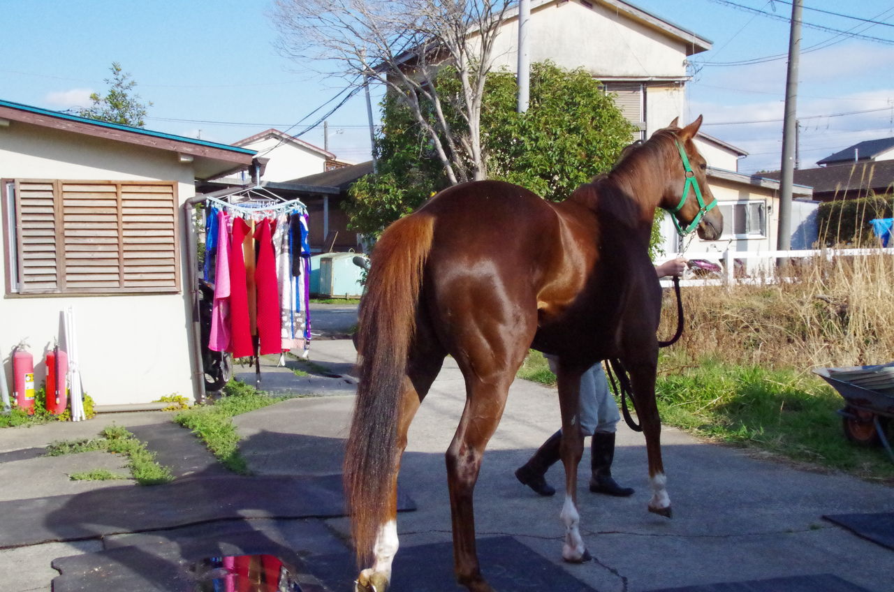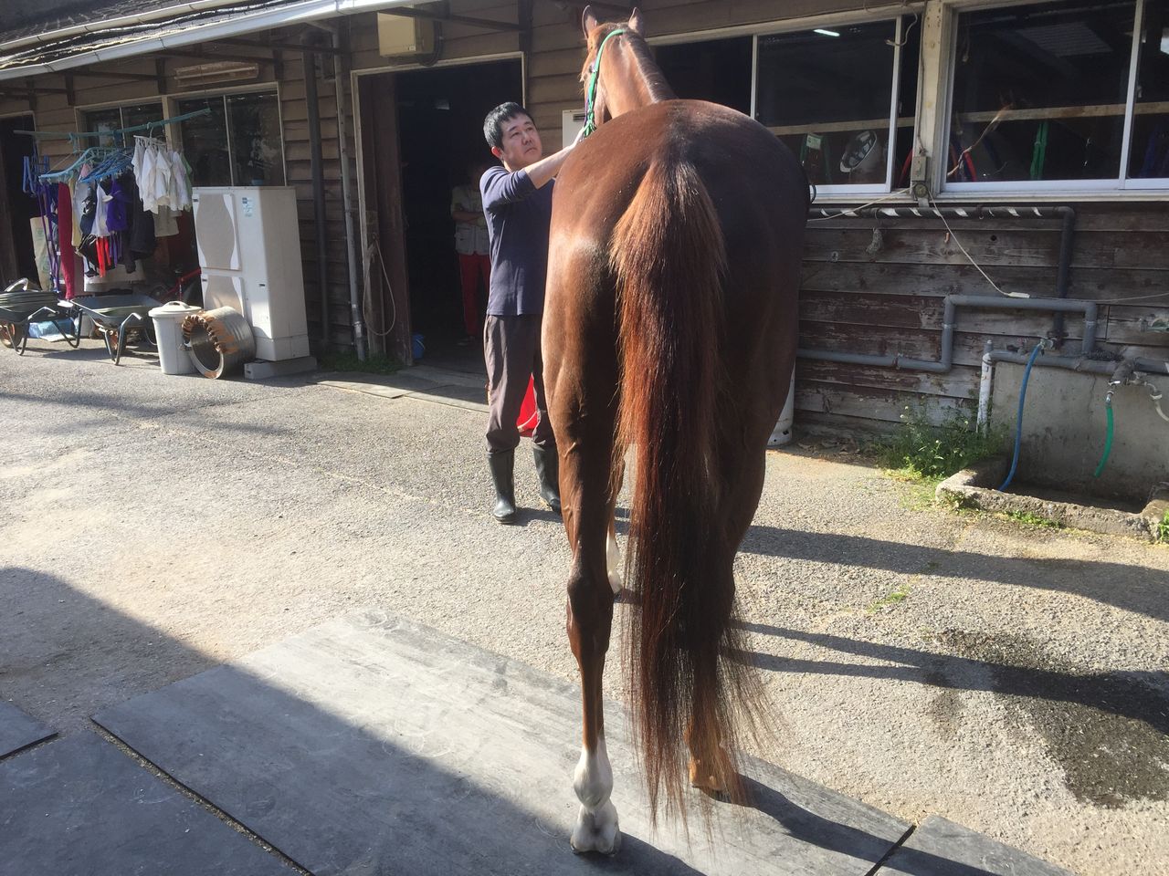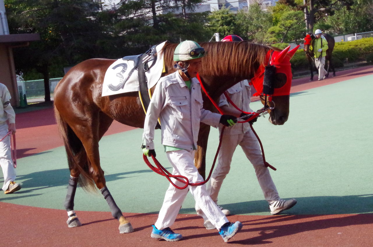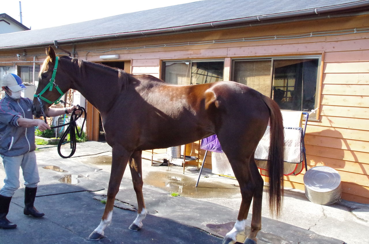 レース後、厩務員が引いて厩舎まで帰るのですが、一生懸命走った馬は息が上がったまま厩舎に着くのですが、