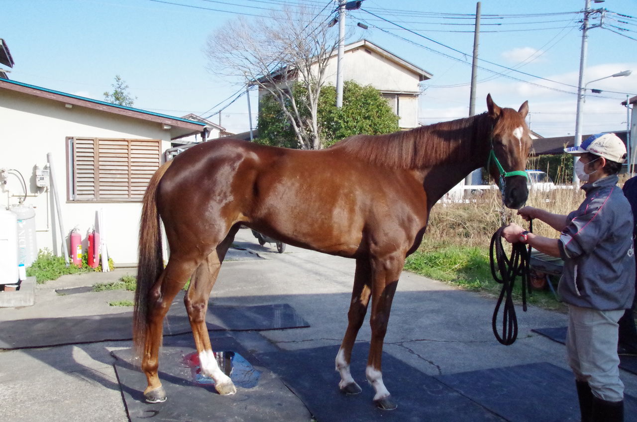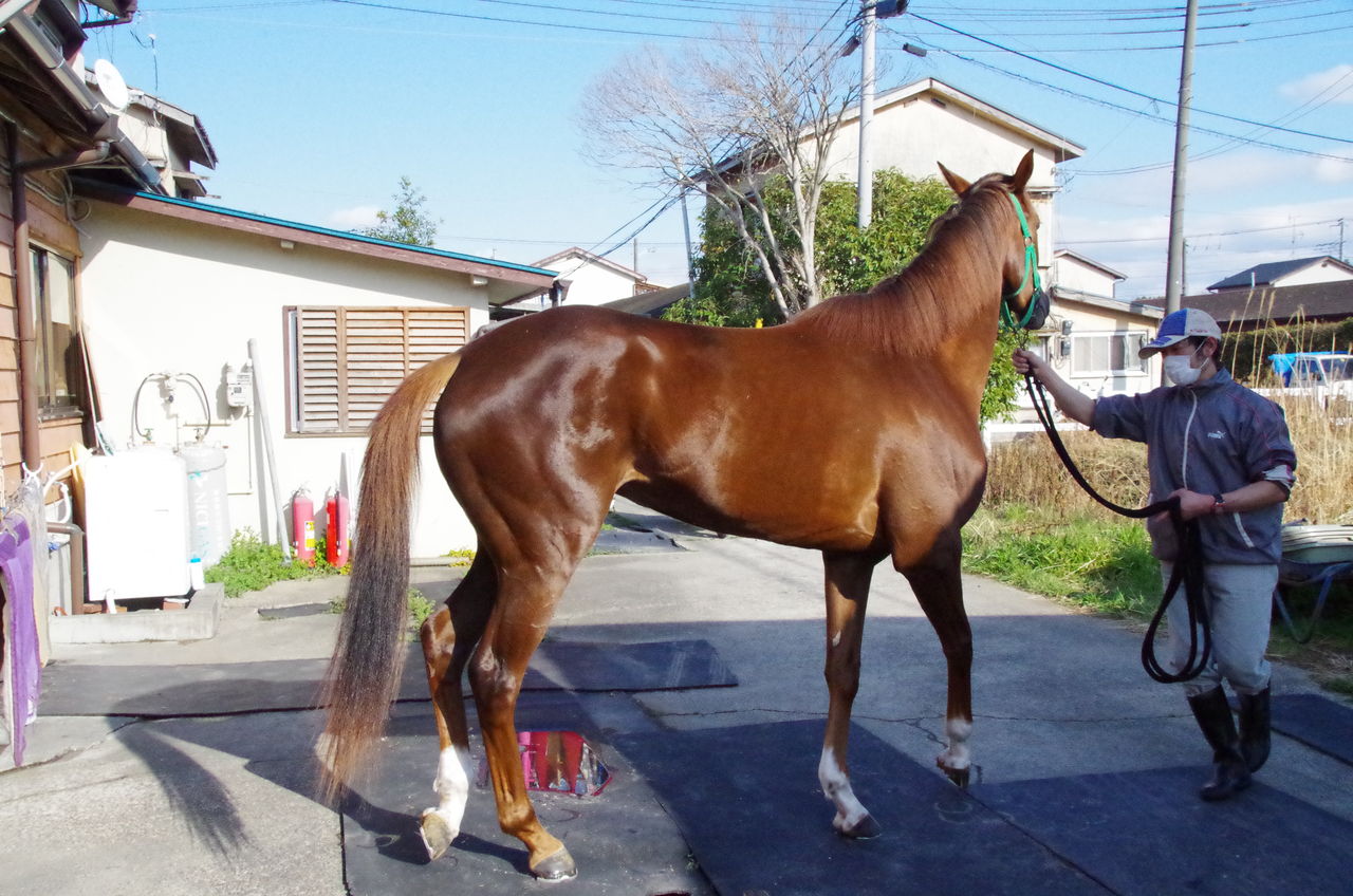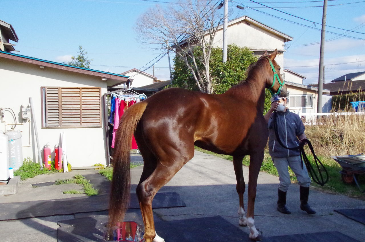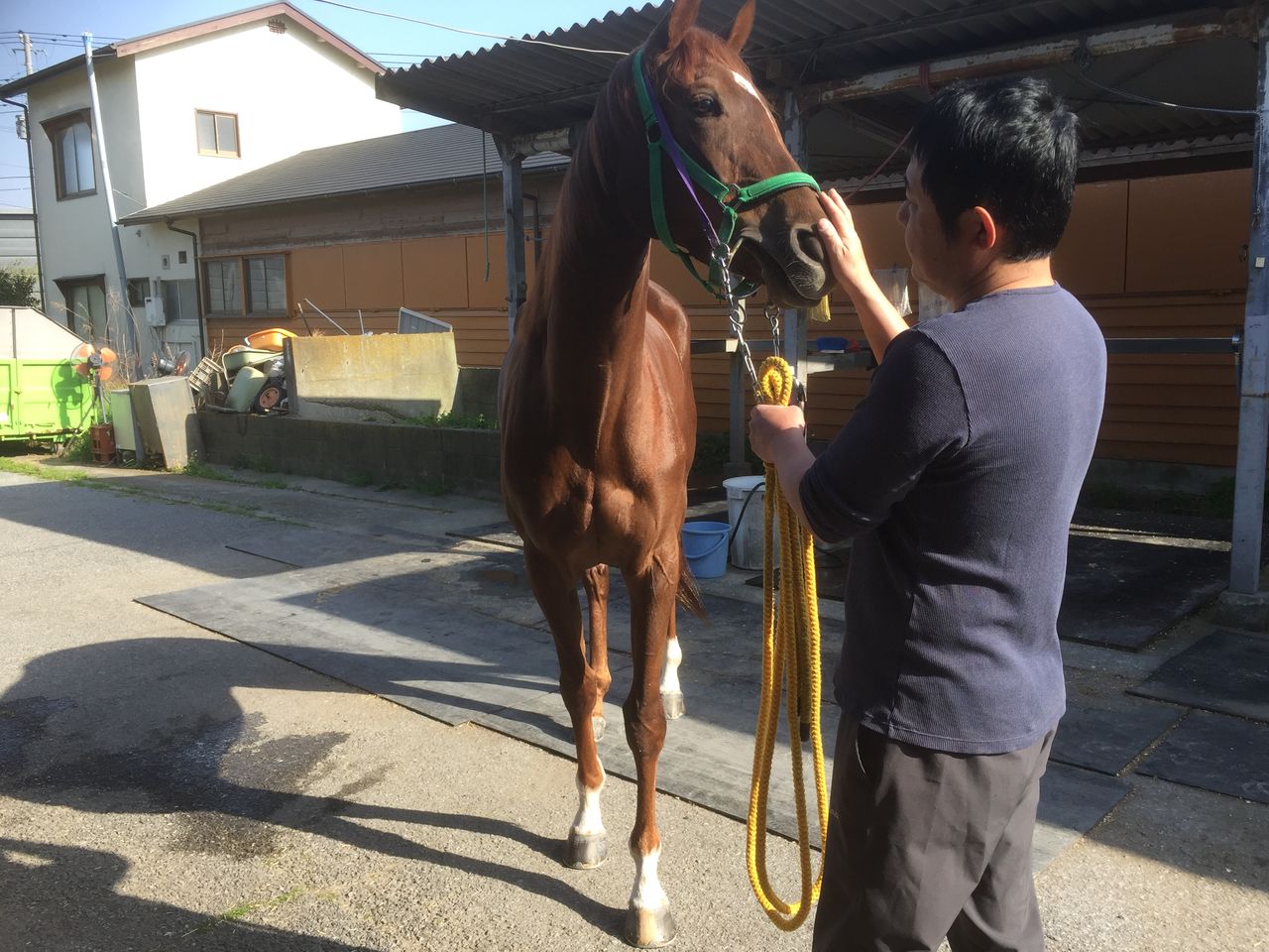 レース後、厩務員が引いて厩舎まで帰るのですが、一生懸命走った馬は息が上がったまま厩舎に着くのですが、