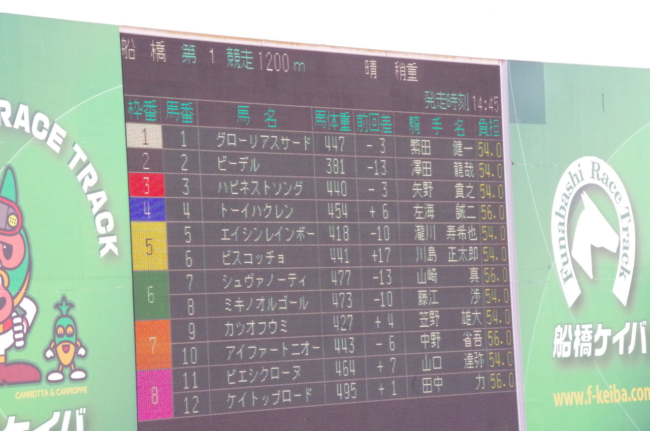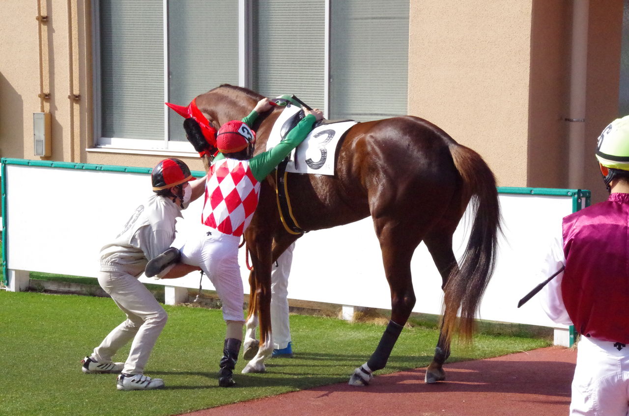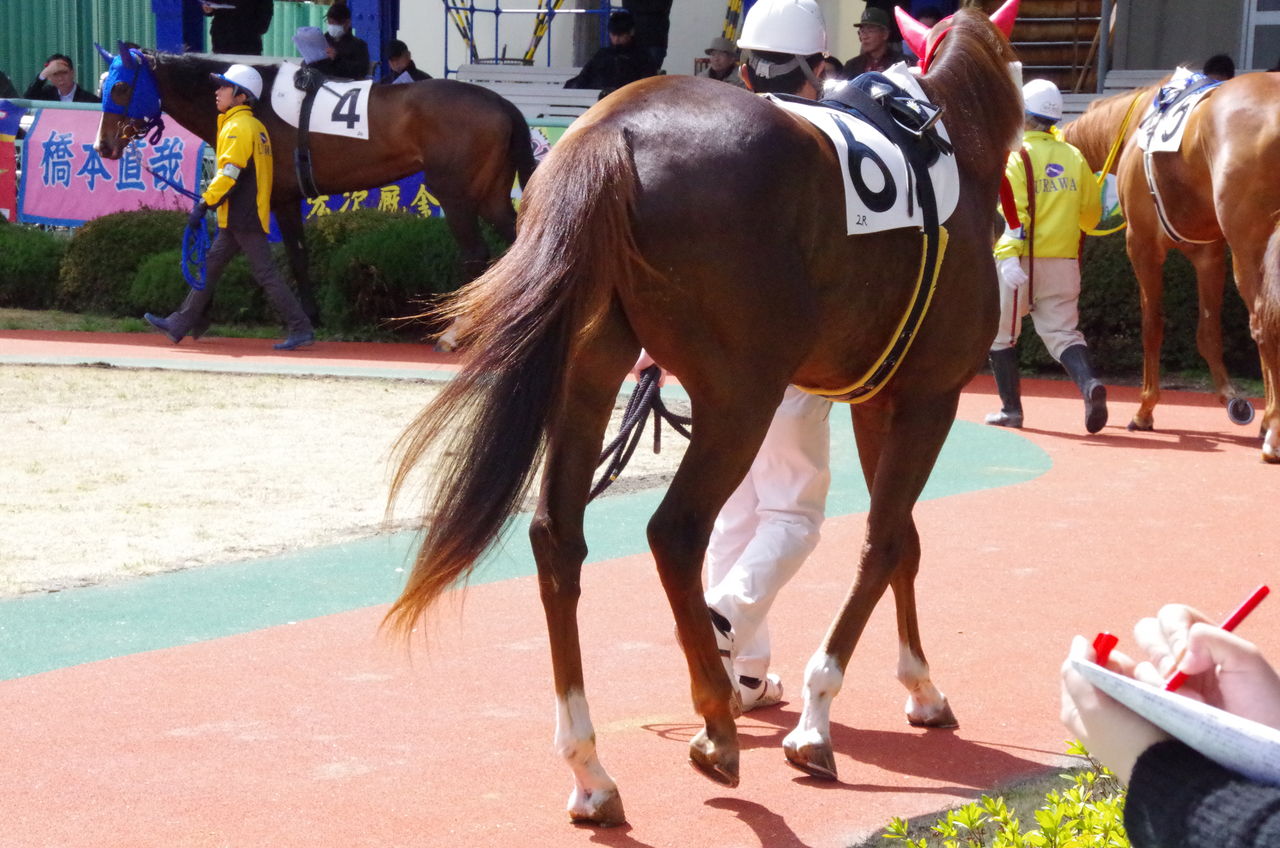 ここのところの雨で、今日は泥んこ馬場となり一丁半は普段より時計がかかる馬場でしたので、