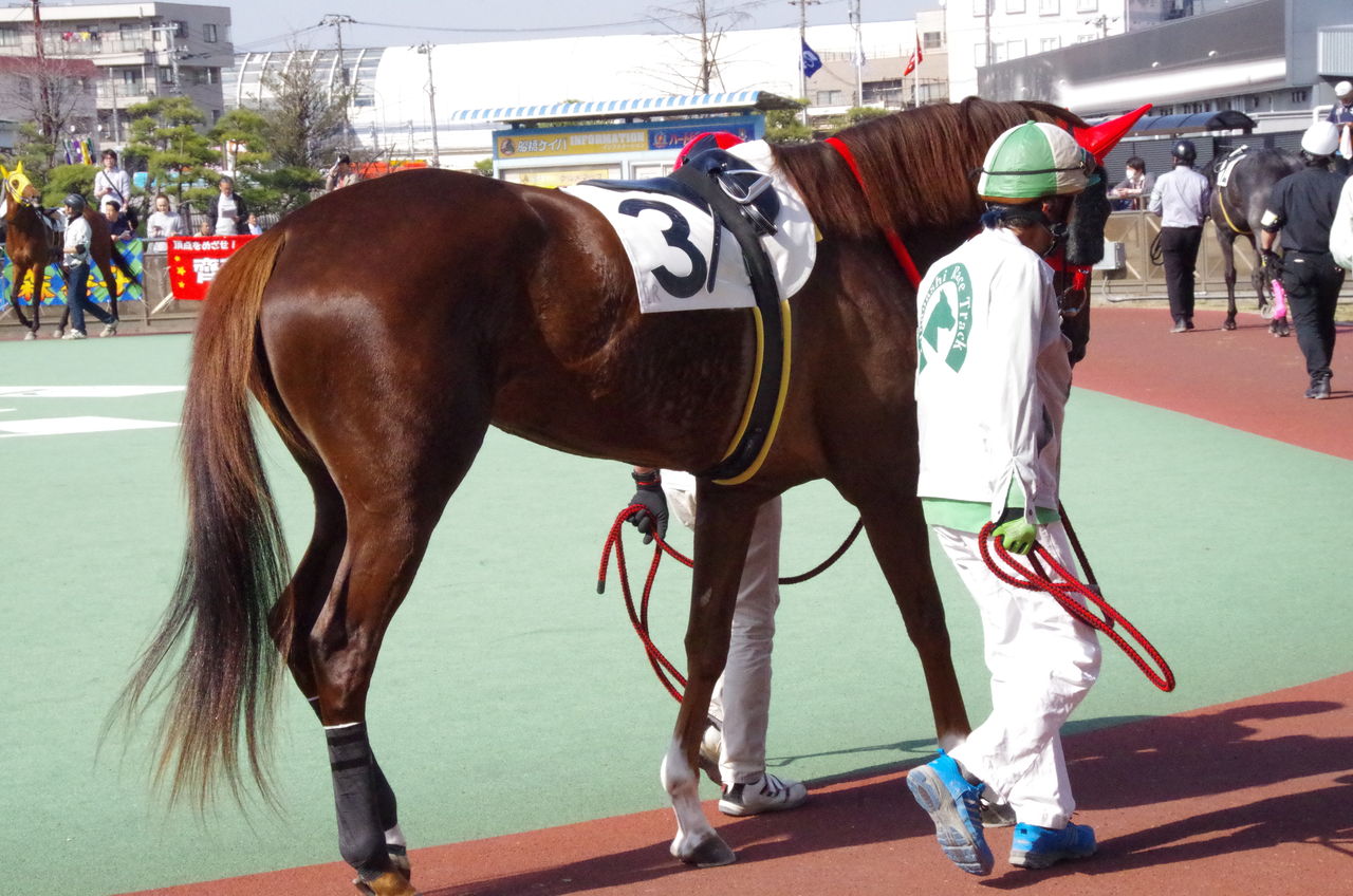 ハピネストソングは、パドックや装鞍所では川崎競馬より落ち着いていました。