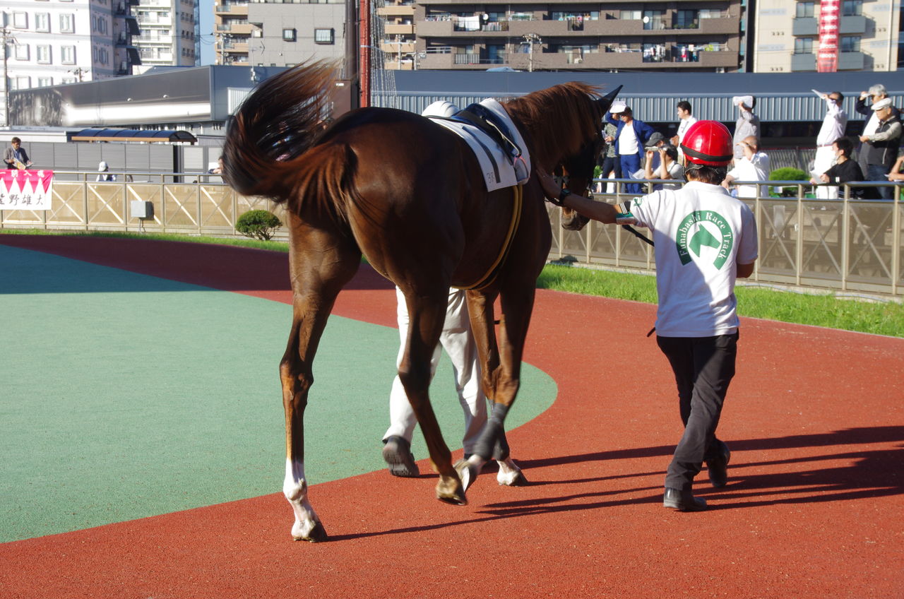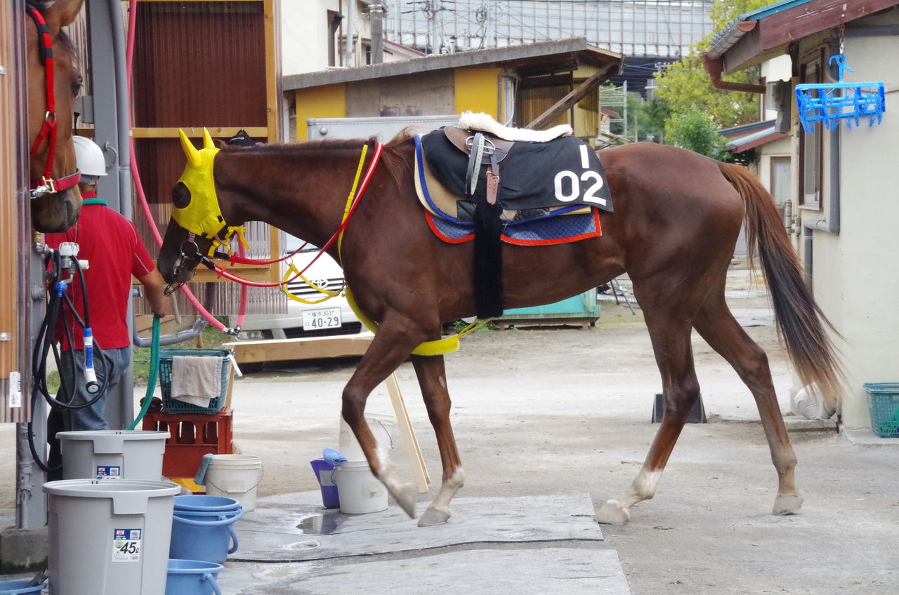 急遽早出しをして矢野騎手が跨ってからもまともに並足が出来ておりませんでした。