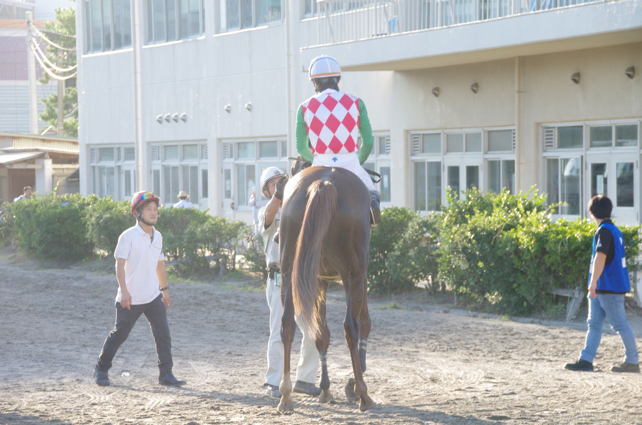 外に出せばもっと伸びたと思いますが、慣らして競馬を覚えてもらった方がいいと思い